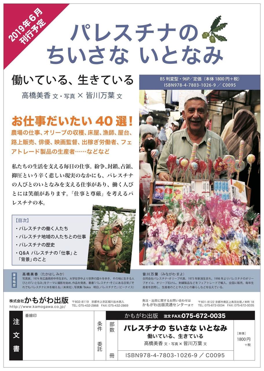 先日からお知らせしているとおり、『パレスチナのちいさないとなみ~働いている、生きている』(かもがわ出版、皆川万葉さんとの共著)が刊行されました。店頭に並ぶのは、いよいよあと数日というところだそうです。