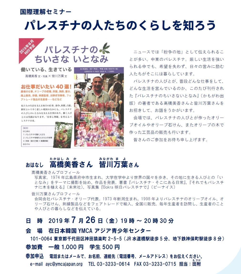 ・「国際理解セミナー パレスチナの人たちのくらしを知ろう」