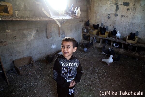 カマールの長男のイマード(孫)は、鳥を追いかけまわし、鳥に追いかけられ、裏庭で遊びながら成長していた。毎日卵を小屋に採りに行くのはイマードの役目だ。命がともにある暮らし、命から恵みを受ける暮らし、殺風景な難民キャンプの裏庭で、子どもたちがそんな風に命のぬくもりを身近に感じながら成長していることが嬉しかった。そんなきっかけをつくることができたことが、嬉しかった。