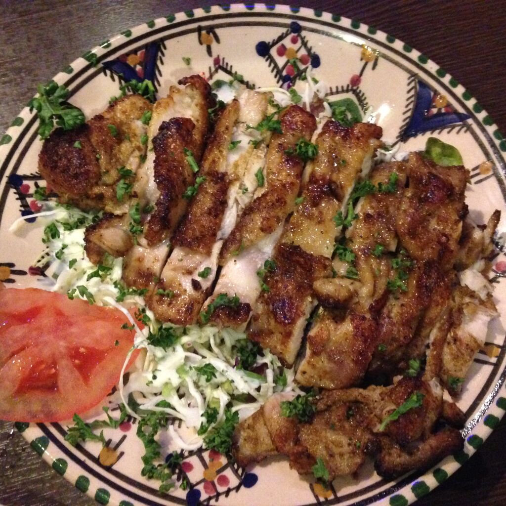 チキンステーキは初オーダー。いつもむしろ鶏モモ串を頼んでしまうので。スパイス(といっても辛いわけじゃない、念のため)がしっかり効いた味。柔らかい。ジューシー。懐かしい味。「パレスチナ人はバーベキューが大好きだからね。バーベキューのときのチキンの味。おかあさんが楽したいときは、バーベキュー。鶏をビネガーやレモンですすいでスパイスで下味をつければ、あとは焼くだけ」とスドゥキさん。ビリンのハイサムの家でもよくやったな、バーベキュー。