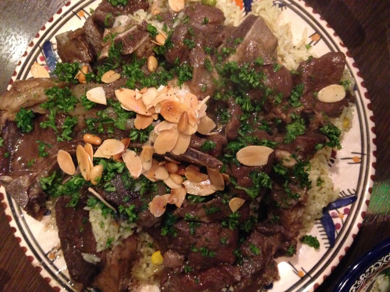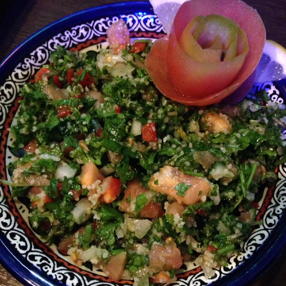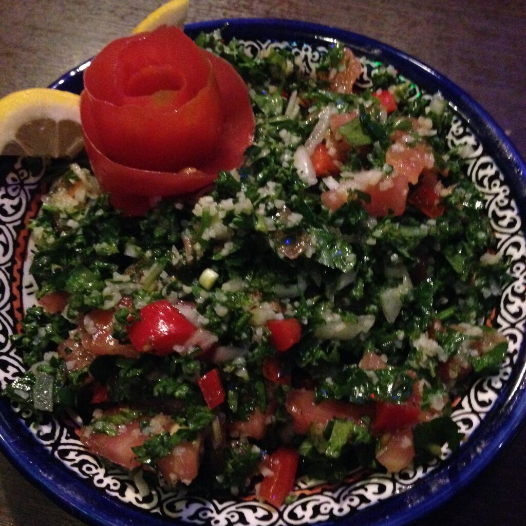 最初にオーダーしたのは、ラム串と甲乙つけがたい大好物のタッブーレ。レモンの酸味とパセリと玉ねぎとトマトのそれぞれの豊かな味がたまらない。クスクス(ブルグルかも)入り。これを食べているだけで元気が出る。