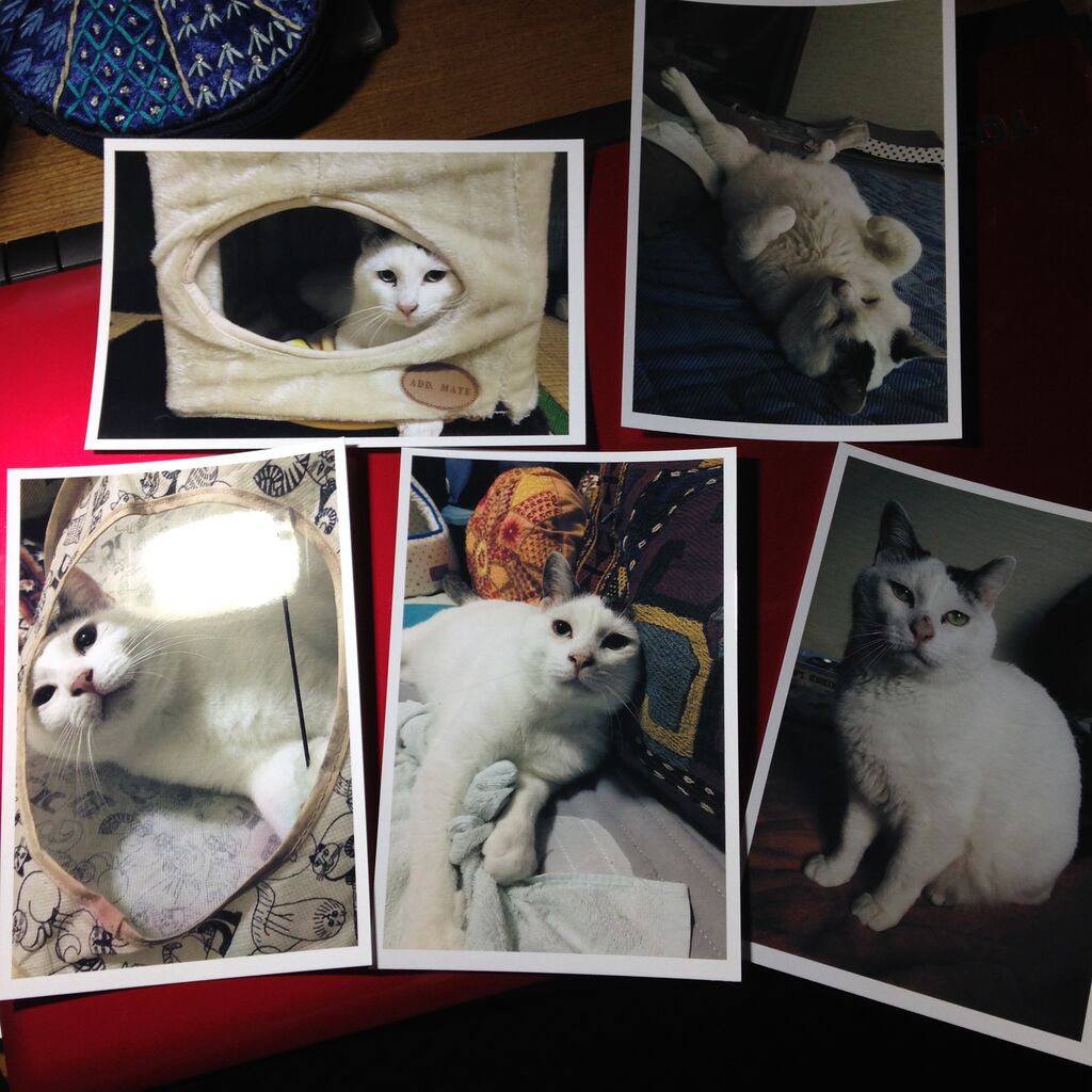 ノラ猫シロさん(保護前の公園暮らし時代)セットと家猫シロさん(我が家の一員となってから)セットあり