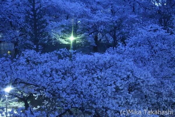窓から夜桜を眺めるのも、今年もそろそろ終わりだね。シロも堪能したかい?