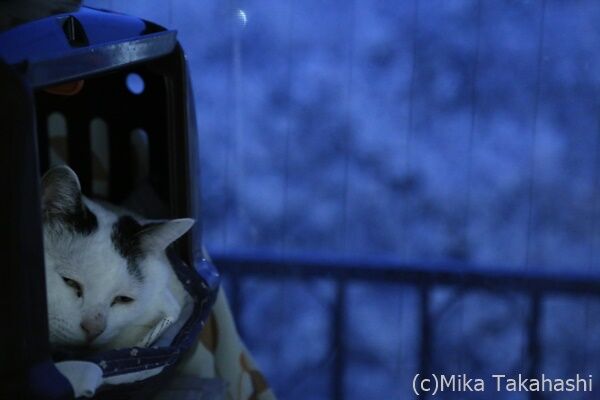 シロは、震災以来通い続けている三陸宮古でお世話になっている方から送られてきた魚が詰められた発泡スチロールの箱で作った寝床がずっとお気に入り。ノラ猫から我が家の子として迎え入れるとき、間に合わせで用意した箱なのに、三年半ずっと使っているよ。