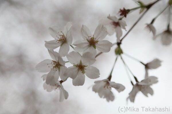 曇り空の夕暮れに、花びらのはかない白さが浮かび上がる。太陽の光を受けて輝いているときと、なんと表情を変えることか。